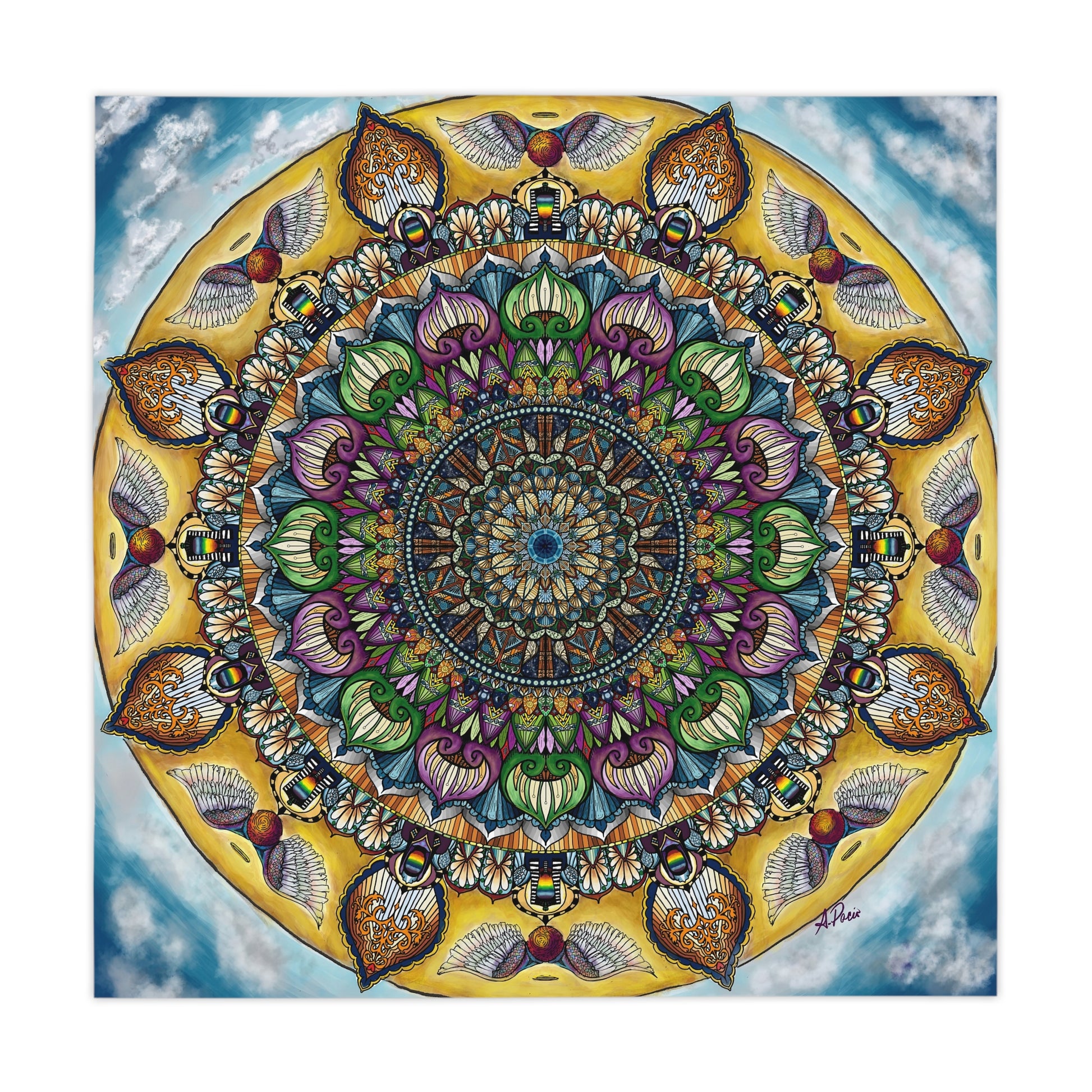 This Mandala represents the devotion and honor still to be found in ancient, mythic form for the Angelic Hosts, even within the corpus of Western Occult Philosophy. A primal vibe of energy, there are entire Mystery Schools in modern times which still speak in devotion to the angels, and this radial iconography is devoted to their purpose.