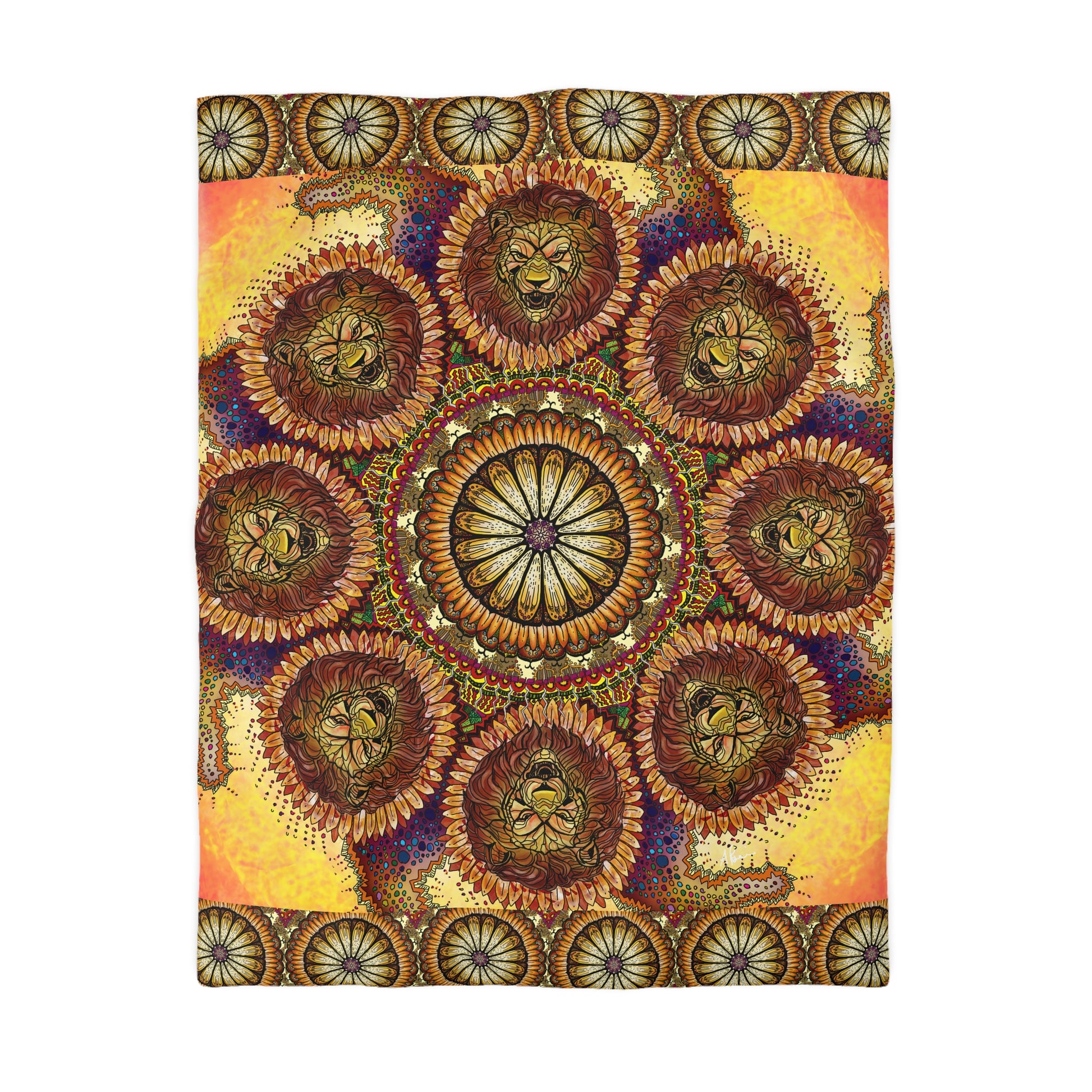 The Lion Summer Mandala represents a pivotal creative evolution in the mandala series for me, where I began to introduce representative illustrative forms as elements of the radial design formats, as mythic symbols. This infused the work with special meaning, as both an artist with fiery temperament in my youth, and also a Leo sun sign. Sweet Summer’s Child indeed.