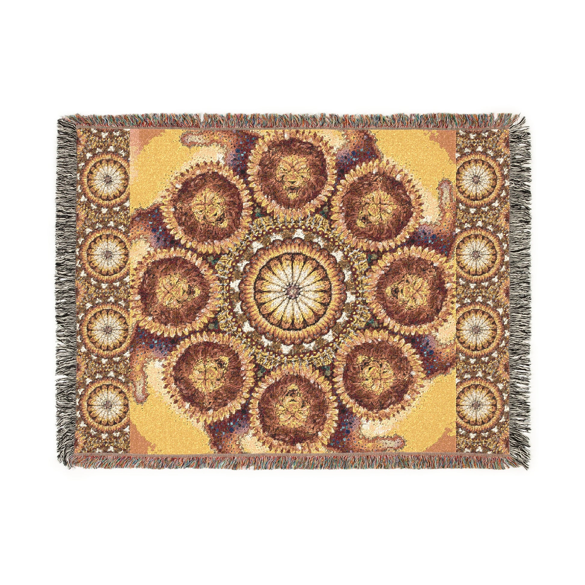The woven blanket is a unique product, using historical weaving techniques to create weaving color patterns to support the print of the mandala design in a rustic, handcrafted and 'americana folk' aesthetic. A comfortable piece of luxurious blanket with color fringe and rustic print of the Mandala chosen, this immediately feels like an heirloom quality piece of practical home decor and beauty!