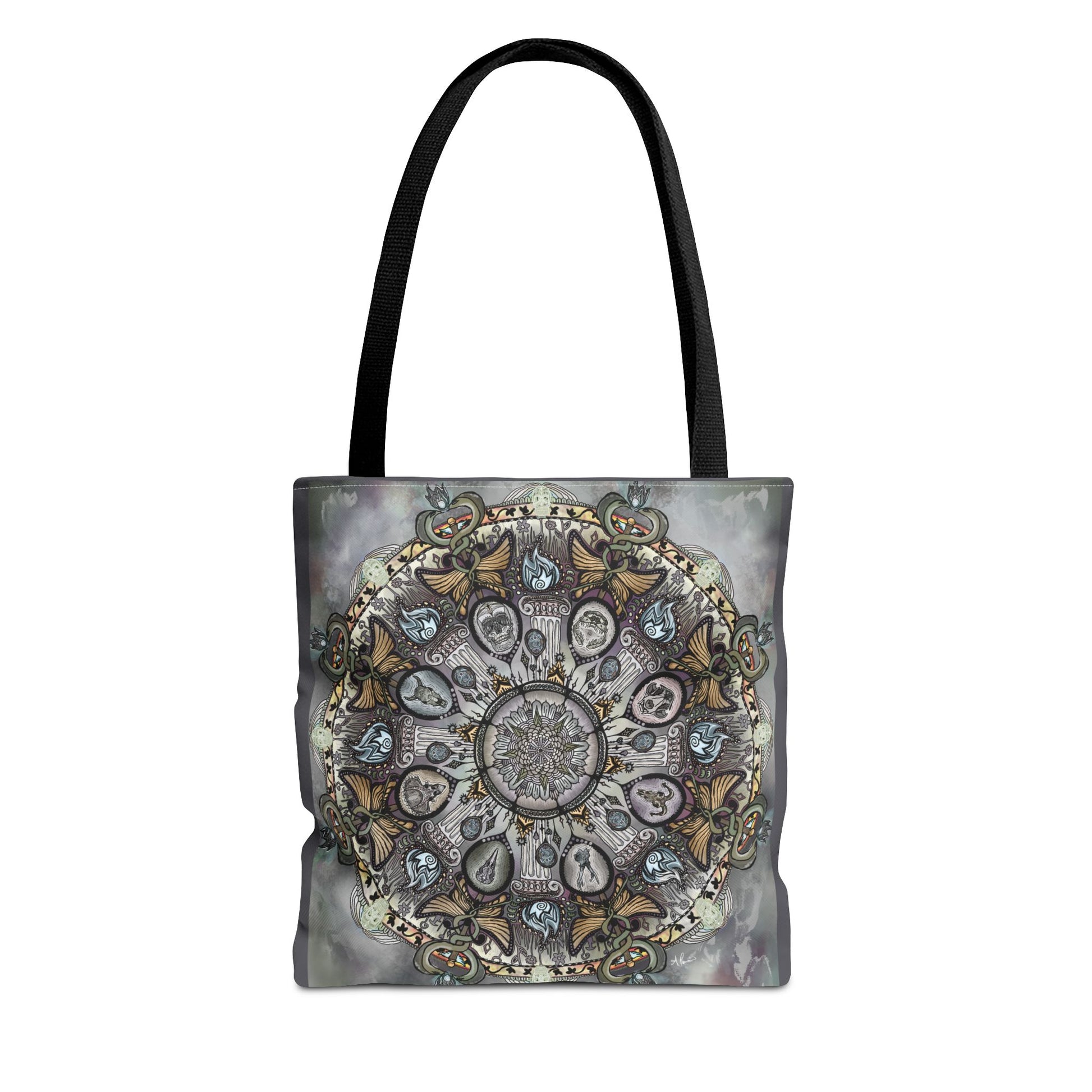 Whether carrying books to the beach or knitting yarn to the cafe, this tote provides the perfect practical way to display your mandala design of choice.