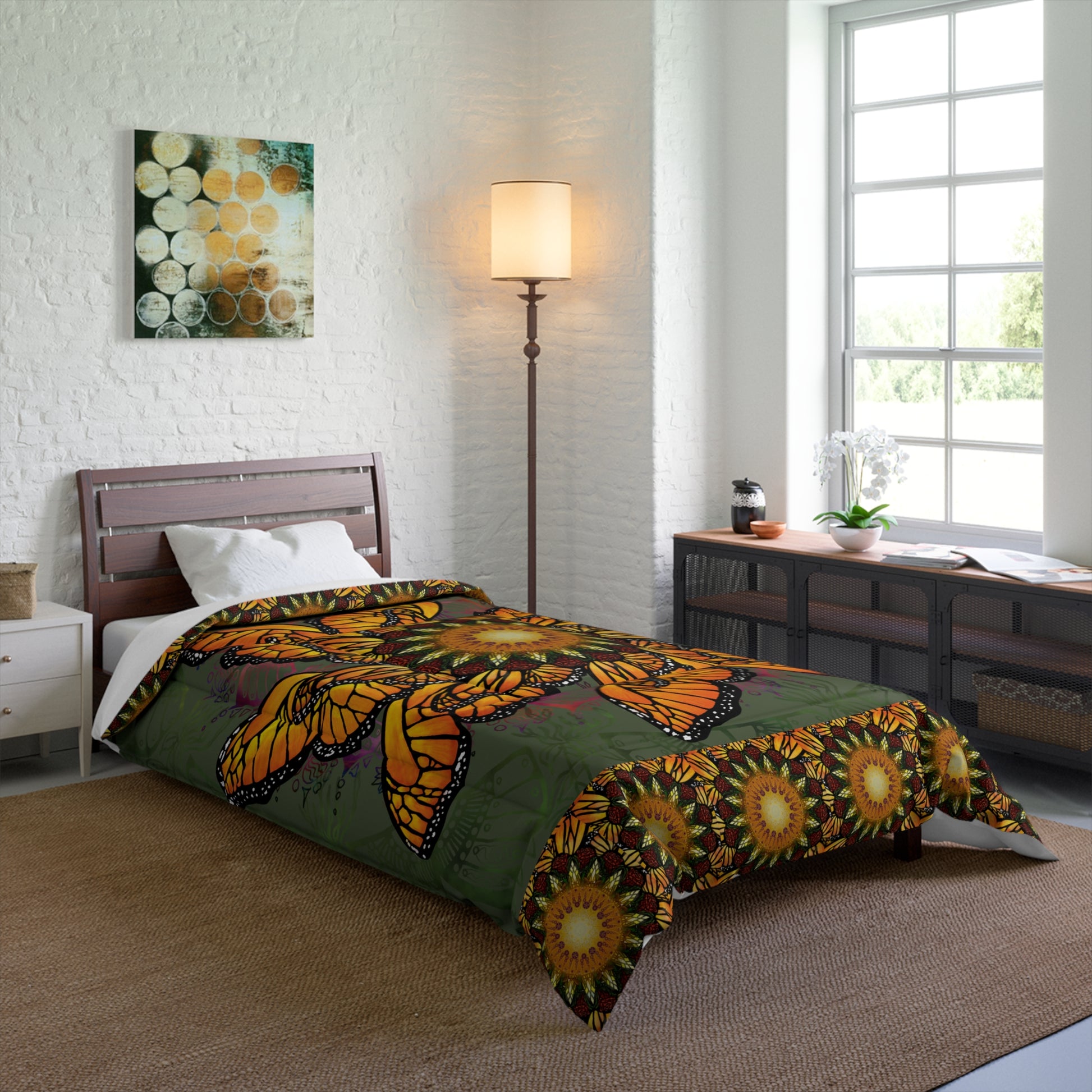 Illuminate your nights with an art print quilted comforter and turn your rest into repose. The epitome of comfort and a vibe as colorful as you are. Cozy up underneath our comforter for a deep and relaxing sleep.A perfect solution for cold drays in bed with coffee, or up early journaling while waiting for the morning light to start a new day.