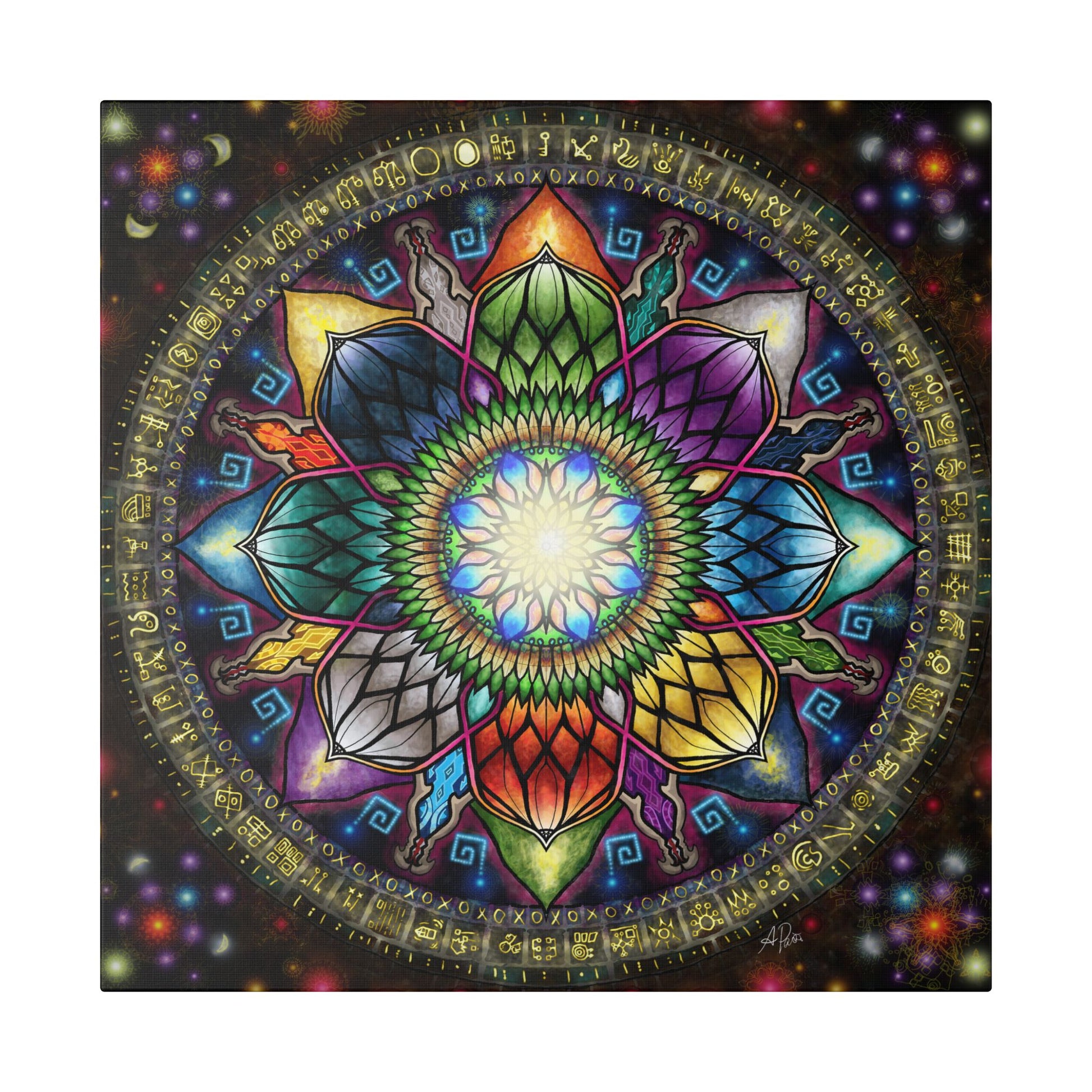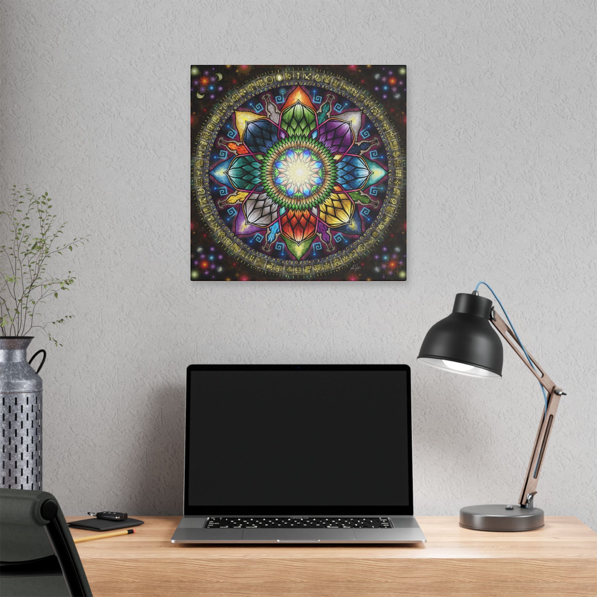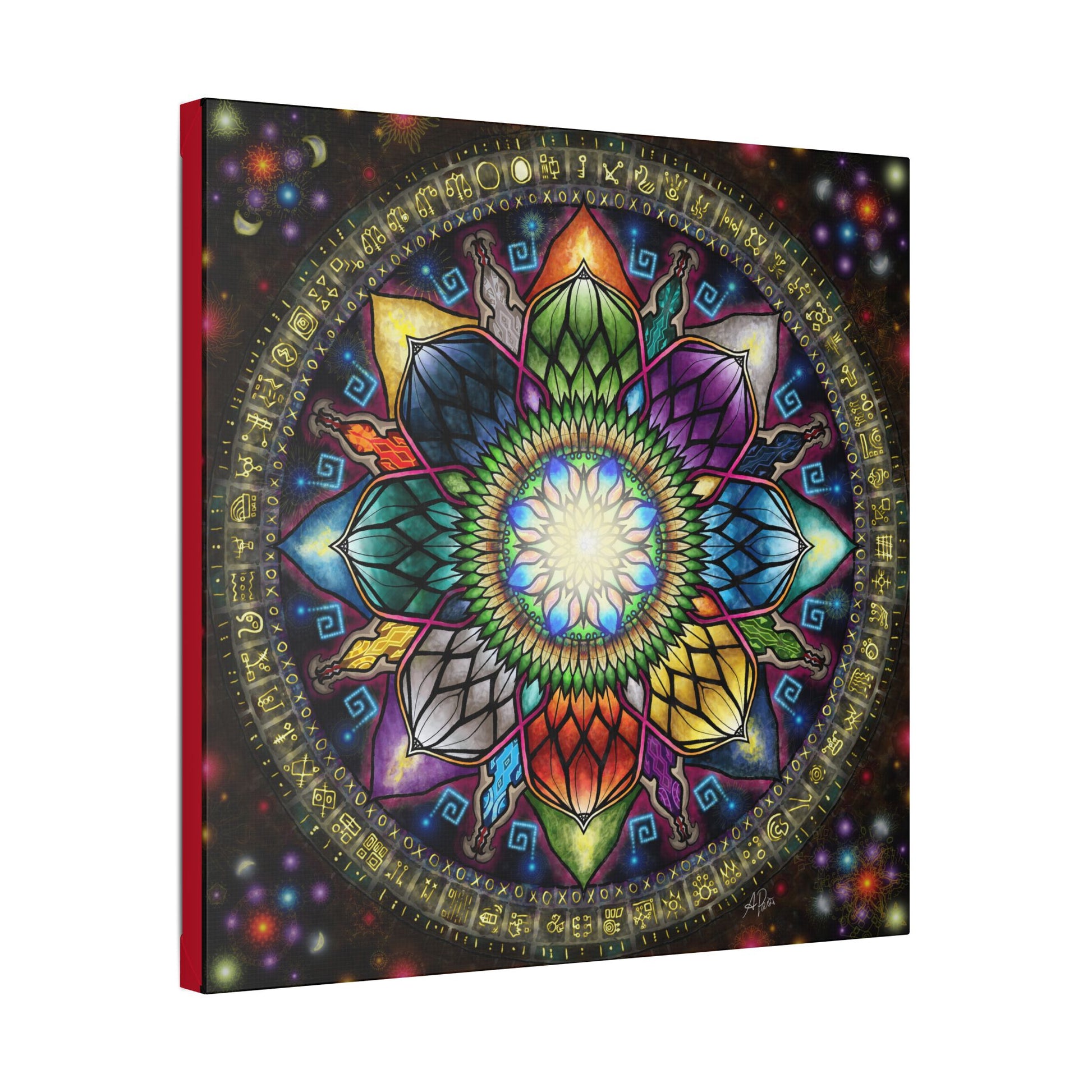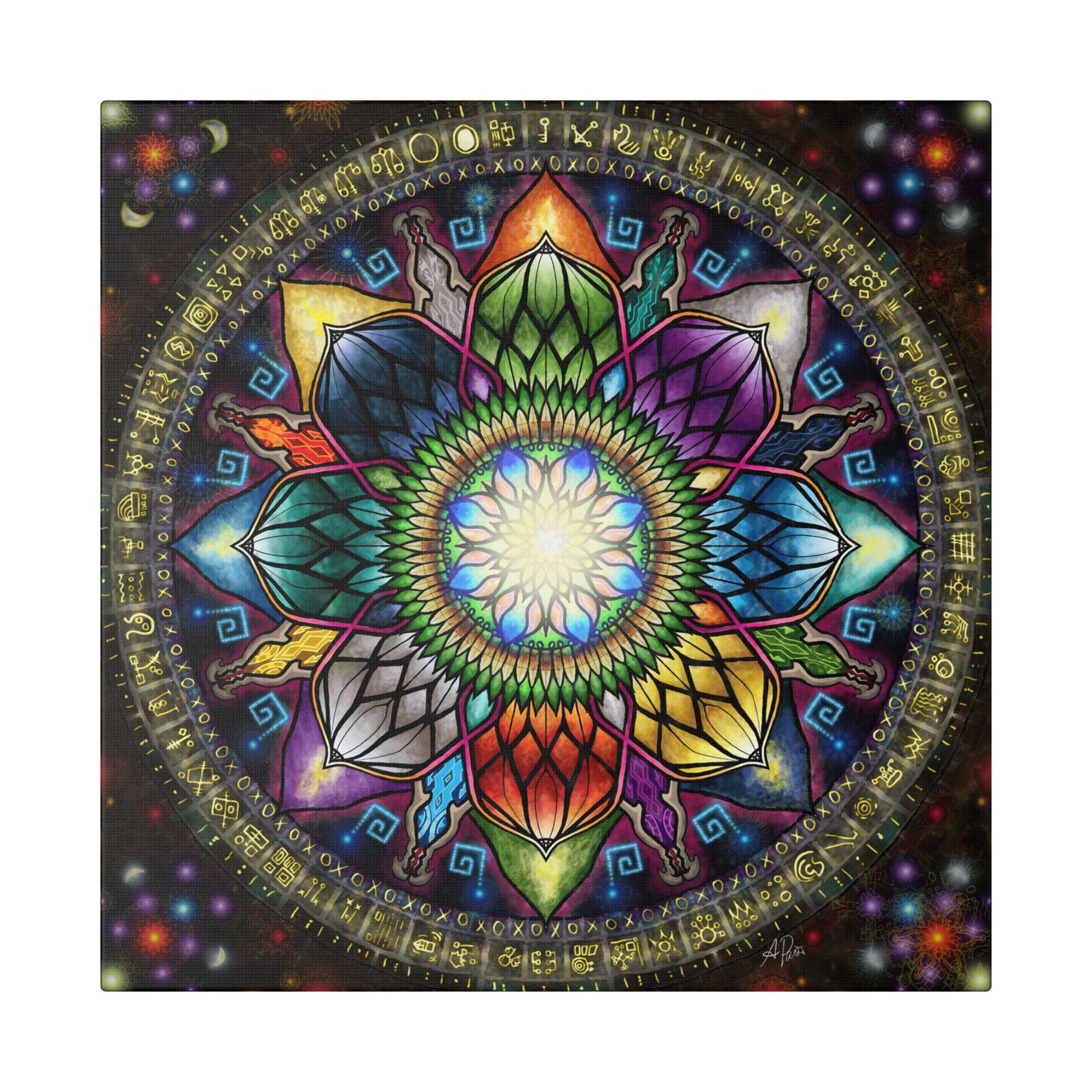 Behold, the Mystic Jewel Mandala! Resurrected from the breaking point of my corporate past, it is reforged, reformed, and re-ignited. This piece transforms that struggle, embracing my old Self on a new path, Centered on Timeless Wonder.