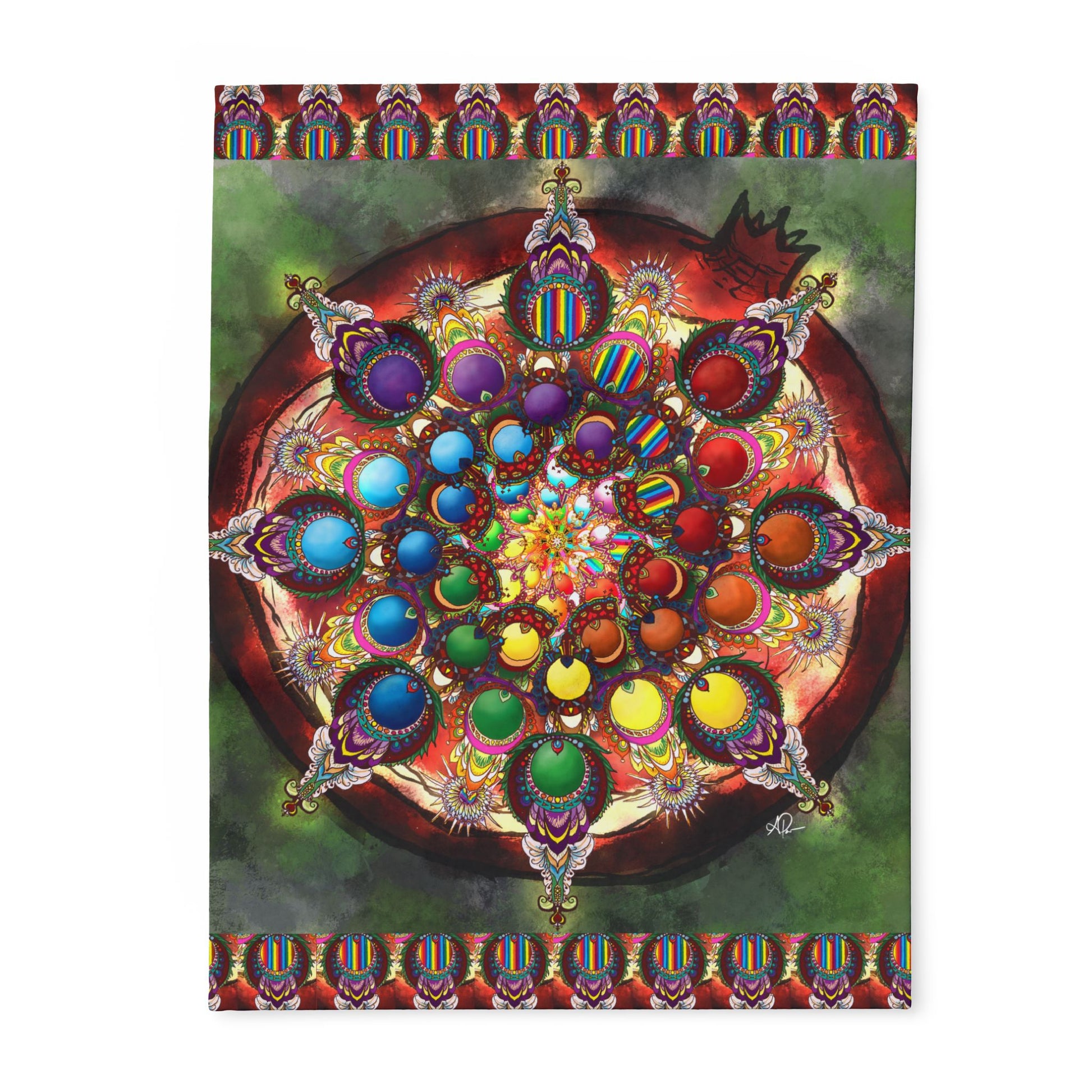 Symbolized by the pomegranate with its myriad seeds, the original "forbidden fruit" of Eden and Persephone's ancient emblem of the Underworld, this mandala celebrates the radiant diversity of the LGBTQIA+ Pride movement across legion generations.