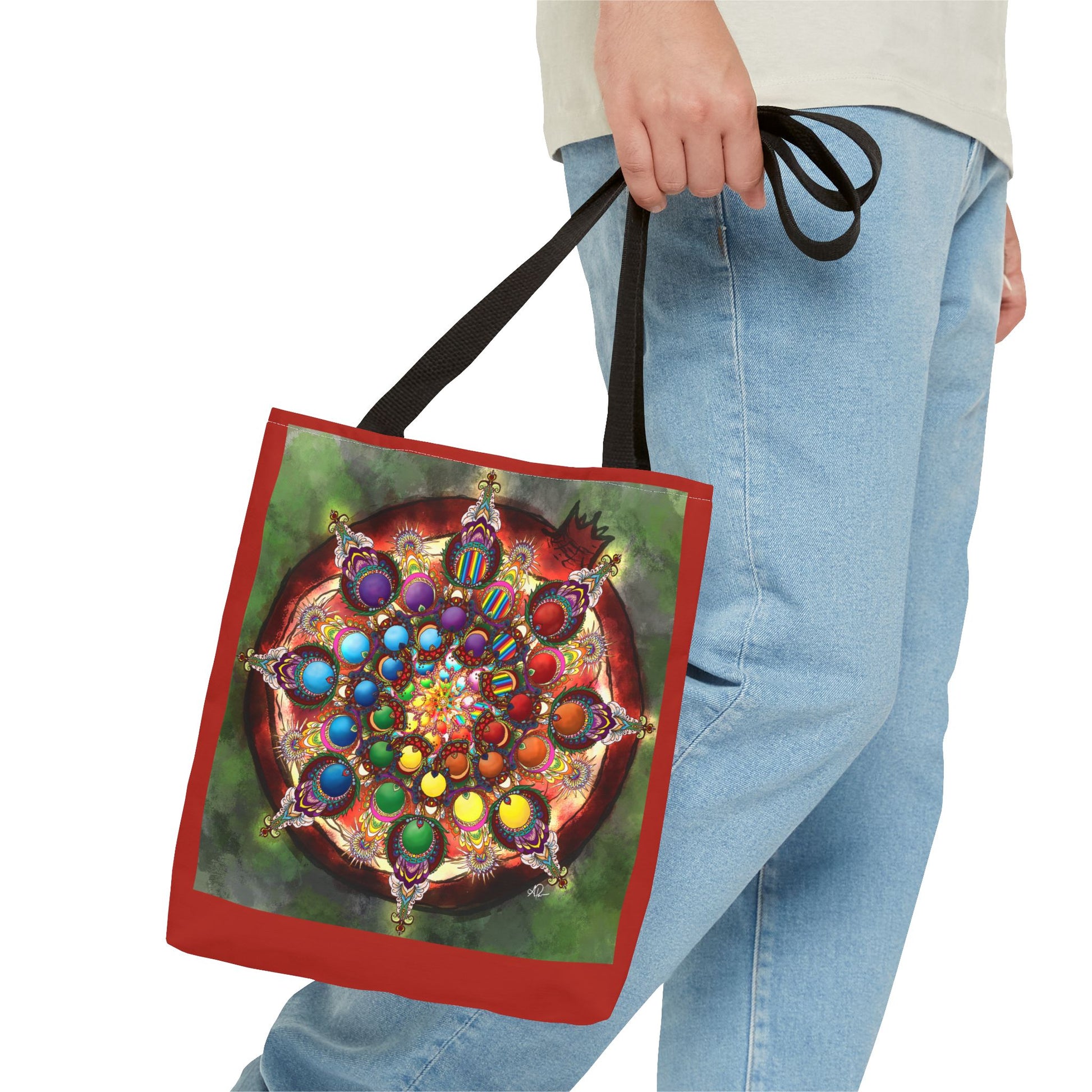 Symbolized by the pomegranate with its myriad seeds, the original "forbidden fruit" of Eden and Persephone's ancient emblem of the Underworld, this mandala celebrates the radiant diversity of the LGBTQIA+ Pride movement across legion generations.