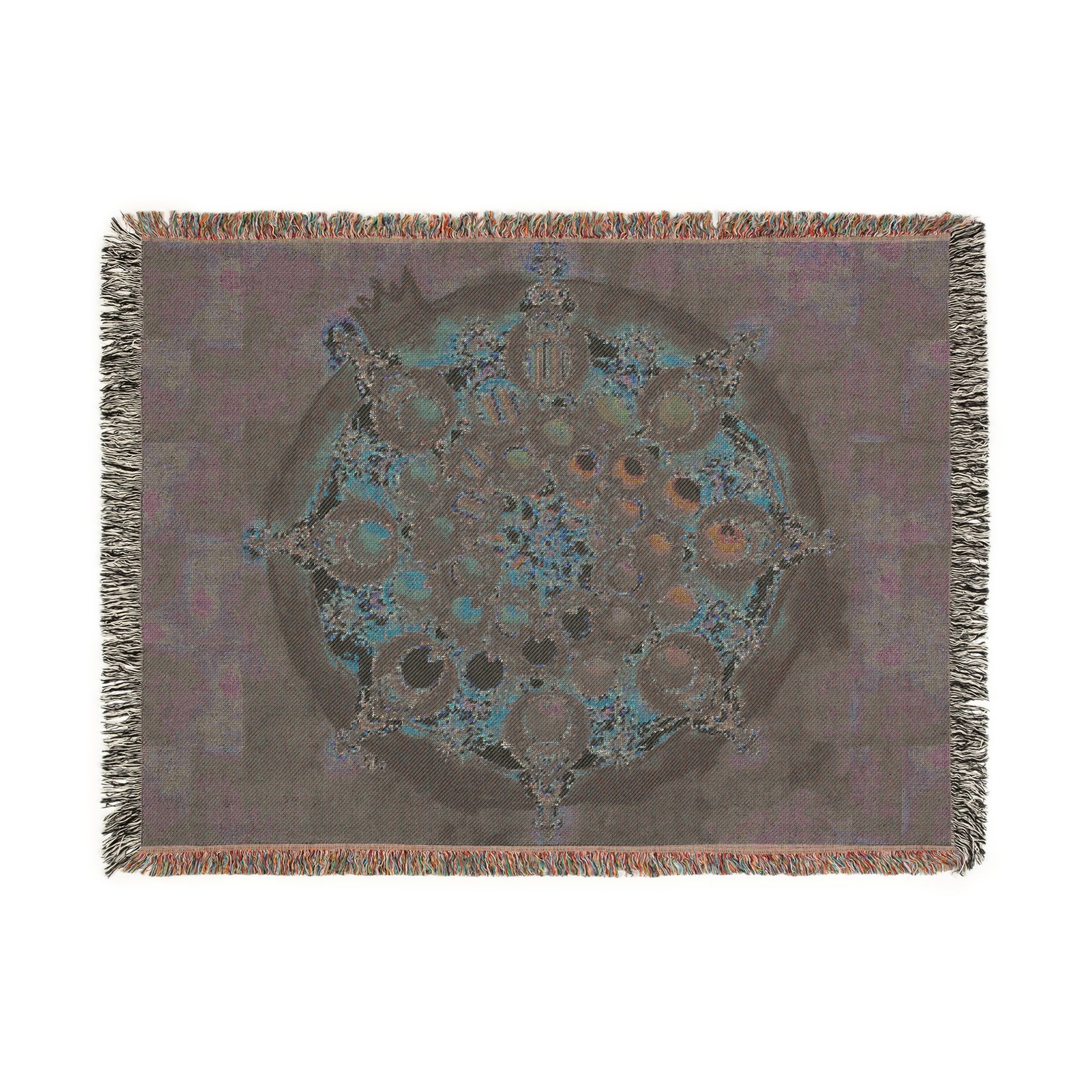 The woven blanket is a unique product, using historical weaving techniques to create weaving color patterns to support the print of the mandala design in a rustic, handcrafted and 'americana folk' aesthetic. A comfortable piece of luxurious blanket with color fringe and rustic print of the Mandala chosen, this immediately feels like an heirloom quality piece of practical home decor and beauty!