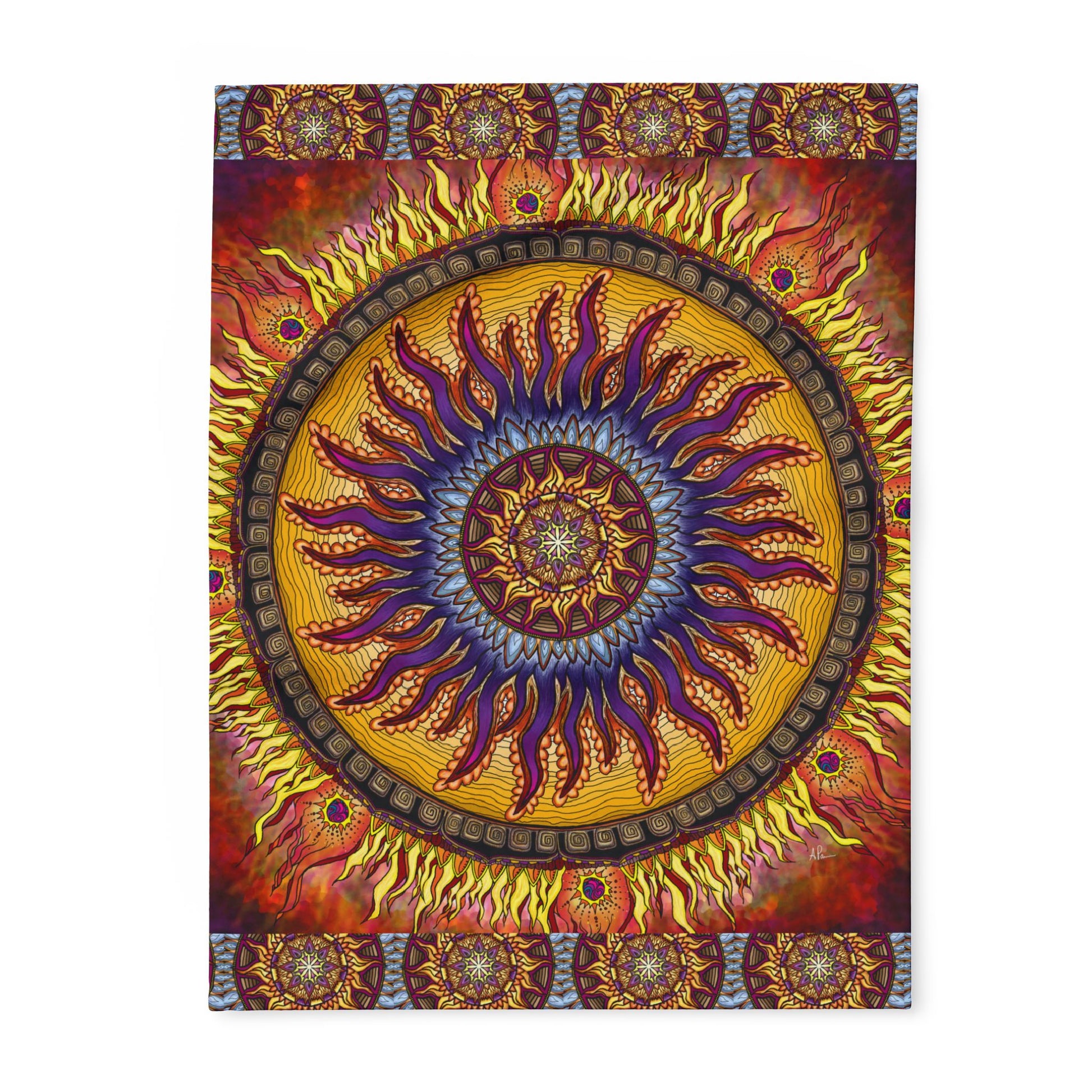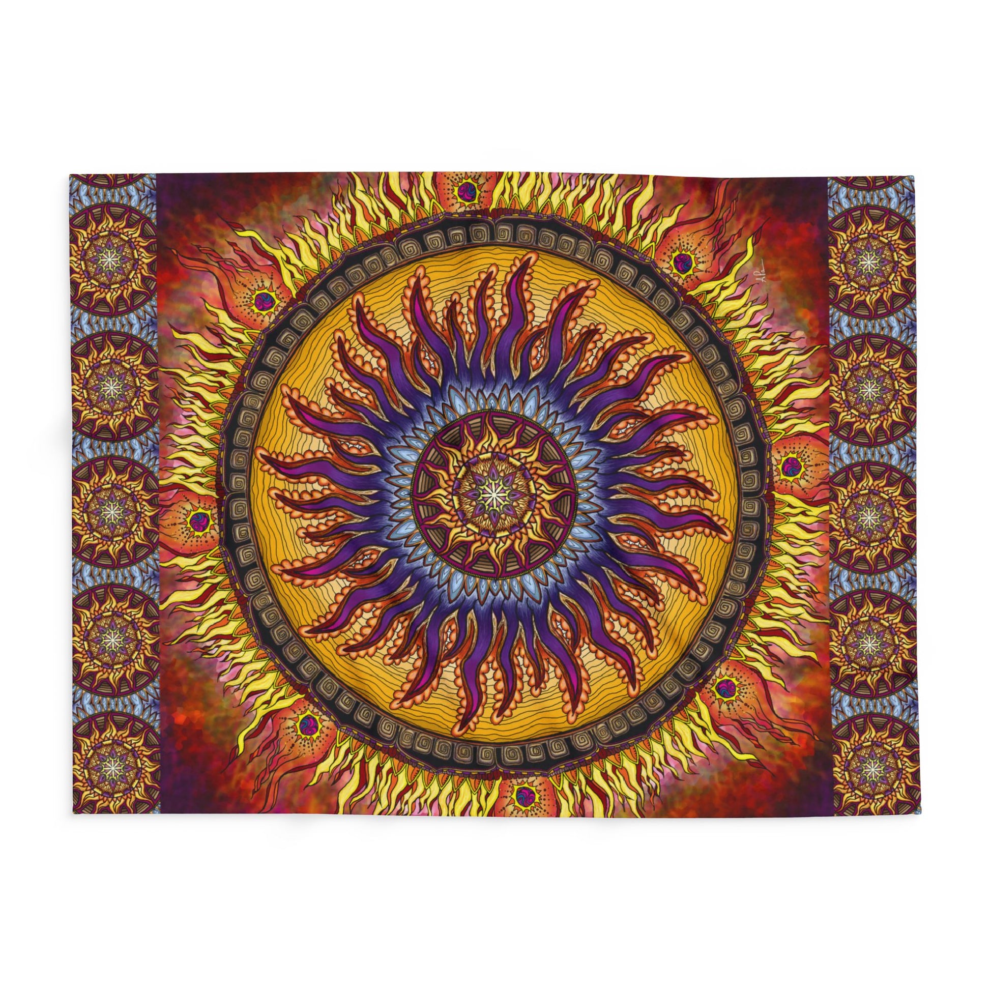 I have this mandala hanging in direct view over top of my computer monitors in my studio. It is a regular point of personal contemplation for me, and a source of regular energy boosts to keep me going. The design evokes the solar radiance in every space it shines.